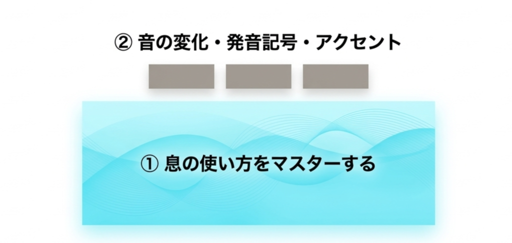 息の使い方や特徴を既に理解できている方は、下記の記事で具体的な発音強化のステップはまとめているのでご覧ください。