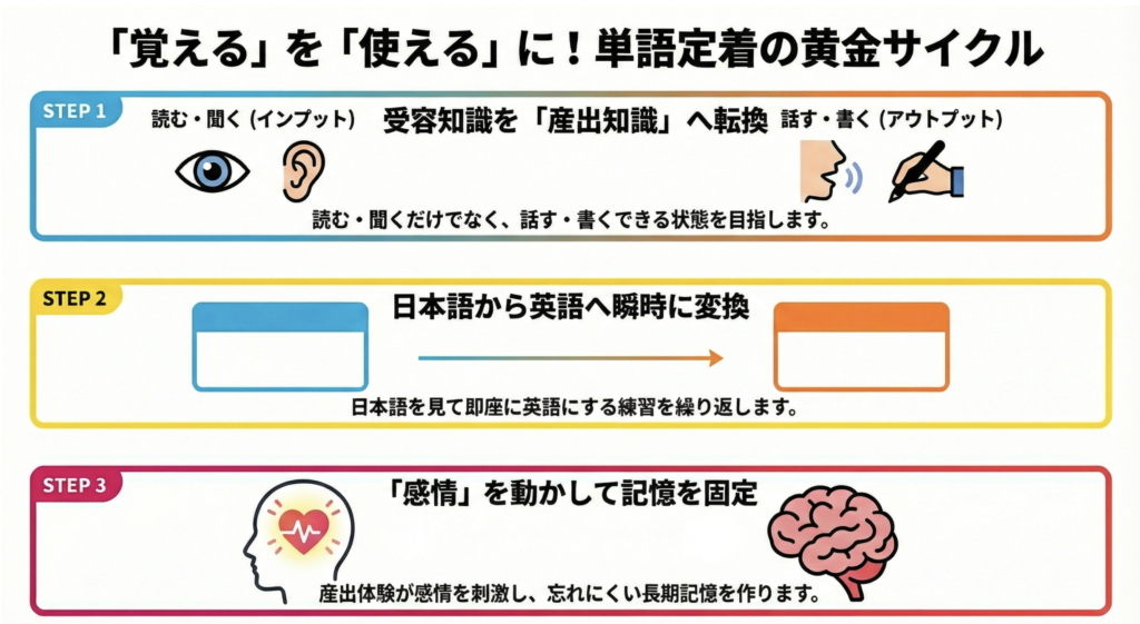 効率的に単語を覚える4つ目の方法は、受容知識を産出知識に活かすことです。