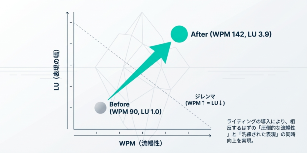 =流暢性(SPM・WPM)×表現の幅(LU)が同時に向上する