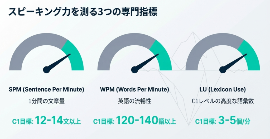SPMとは、1分間で何文話せているかを表す指標です。