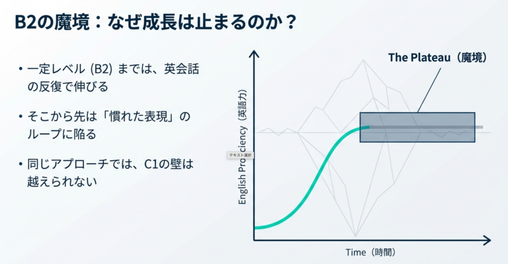 では、なぜB2レベル以上のクライアントさんに対して、1分間スピーチやオンライン英会話だけでは限界があるのでしょうか?