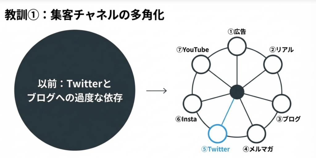 まず1つめの教訓は、「集客のチャネルはできる限り広えておくこと」です。