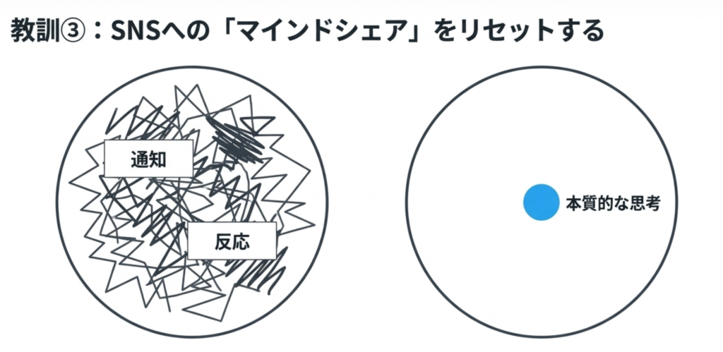 3つめの教訓は、「SNSの世界に依存しすぎてはいけないこと」です。